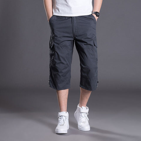 Summer Men's Baggy Multi Pocket Cargo Straight Shorts breeches Male Long Army Green Khaki Mens Loose Short Plus Size 5XL